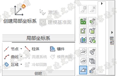 菜单操作、节点的创建、通过坐标系创建节点、在已有两节点之间创建节点、平分曲线创建节点、偏移创建节点、曲线相交创建节点、线的创建、两节点创建直线、三节点创建圆或圆弧、角度创建圆弧、节点创建样条曲线、连接两曲线来创建曲线、断开曲线、区域的创建、通过封闭曲线创建区域、节点创建区域、直线创建区域、通过拉伸曲线创建曲面、通过边界创建孔洞、节点创建孔、镶件创建、镶件创建实例、局部坐标系(LCS)的创建、LCS的创建、 LCS的创建实例、移动与复制、三点旋转模型、指定比例因子缩放模型、镜像创建模型、查询实体、型腔重复向导、流道系统向导、冷却回路向导、模具镶块向导、曲面边界诊断、曲面连通性诊断。